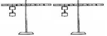 在下图中的杠杆尺右边哪个位置挂上钩码,才能使杠杆尺达到平衡。(费力、省力各一种)