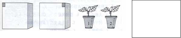 1、准备两盆豆苗,两个纸盒。去掉盒盖,在盒的底部一端开个窗户。把两盆豆苗放在阳光下,各扣上一个纸盒,让一个纸盒的窗户朝左,另一个纸盒的窗户朝右。经常浇水,保持盆内土壤湿润,浇水后仍然把纸盒扣上。如图: